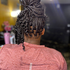 Experience the magic of our services - they all come with a luxurious shampoo and conditioning treatment. Your hair deserves the best care. ((your hair can't exceed 10 inches in length for this style. Discover the ultimate style freedom with medium knotless braids! Say goodbye to hair worries. These stunning braids are hassle-free, comfortable, gentle on the scalp and ideal for promoting hair growth. and oh-so-versatile. Embrace your unique beauty and rock any look effortlessly. Love your hair in a whole new way! Get ready for flawless, knotless braids. Please note that this service may take longer than listed, so be sure to plan accordingly and bring water and a snack to keep yourself comfortable during your appointment.